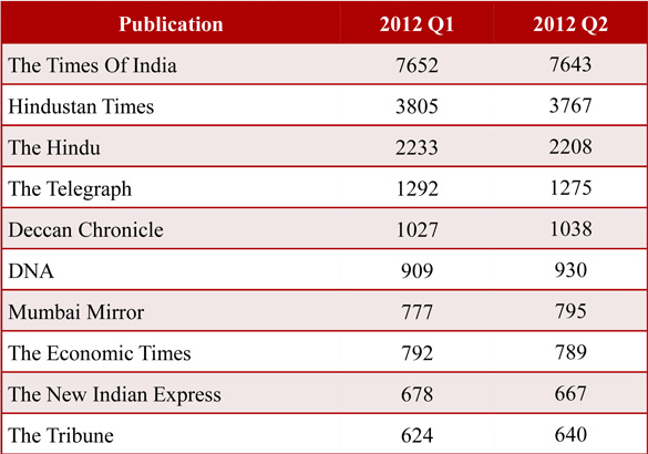 Media Research Users Council (MRUC) has announced the topline findings for Indian Readership Survey (IRS) 2012 Q2.
