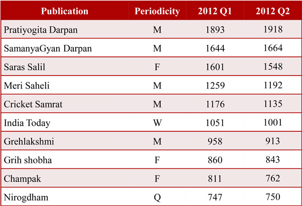 The top two Hindi magazines has seen a growth in AIR for this quarter. While Pratiyogita Darpan recorded a spike of 25,000 readers, SamanyaGyan Darpan registered an increase of 20,000 readers.