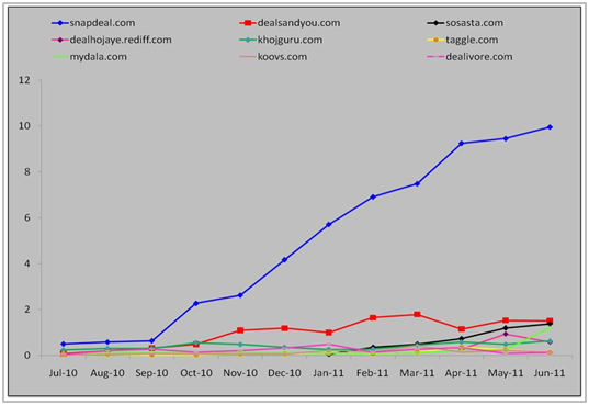 ViziSense’s latest report on the B2C e-commerce segment estimates that while the online audience grew by 40% between July 2010 – June 2011, e-commerce (non-travel) grew three times of that. The report also pointed out that the Services category (group-buying and daily deal sites as well as ticketing sites) has created plenty of first-time online shoppers, who continue to hunt for more such deals.