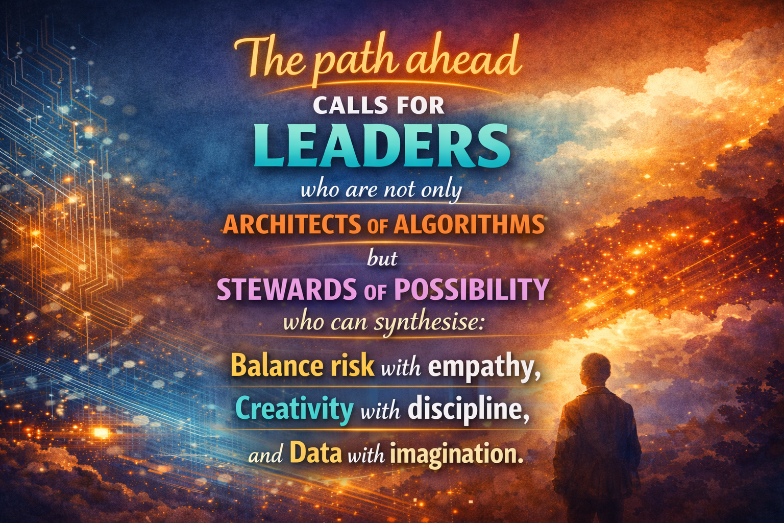 And we’re only just getting started. The path ahead calls for leaders who are not only architects of algorithms but stewards of possibility who can synthesise: balance risk with empathy, creativity with discipline, and data with imagination.
