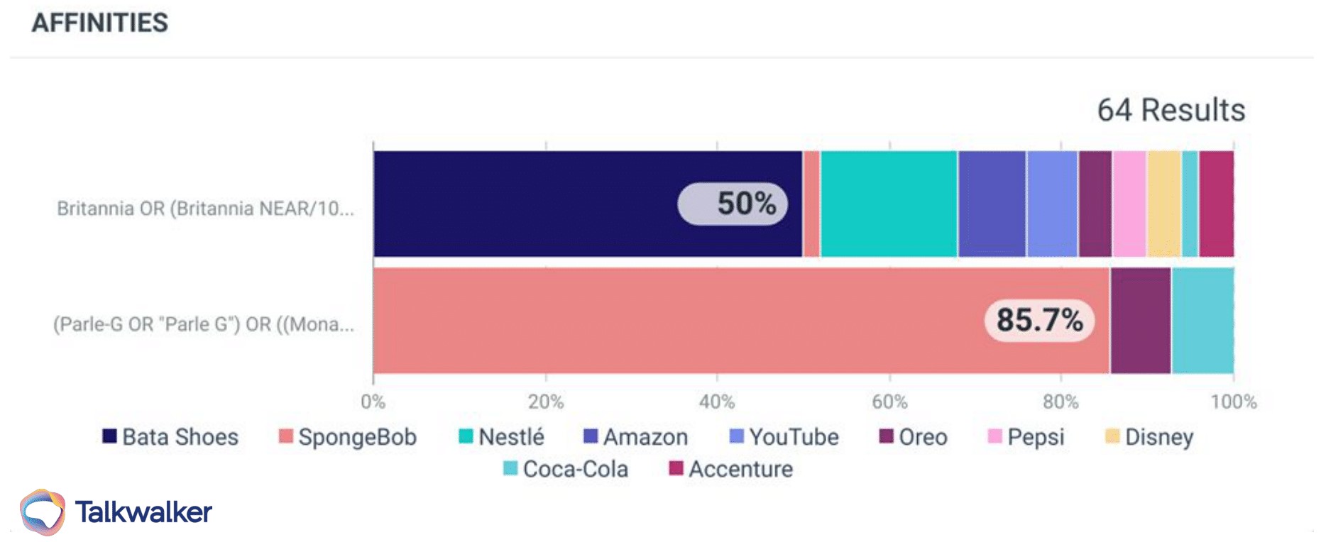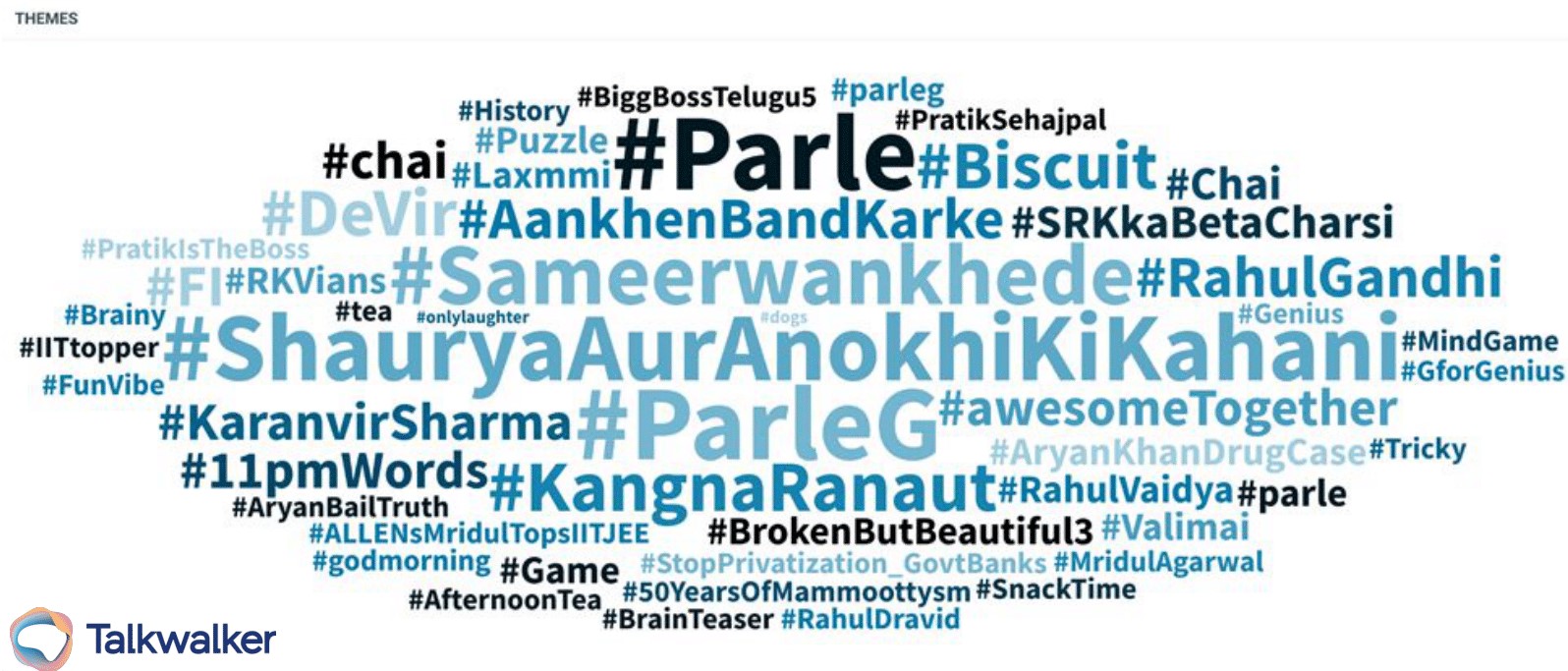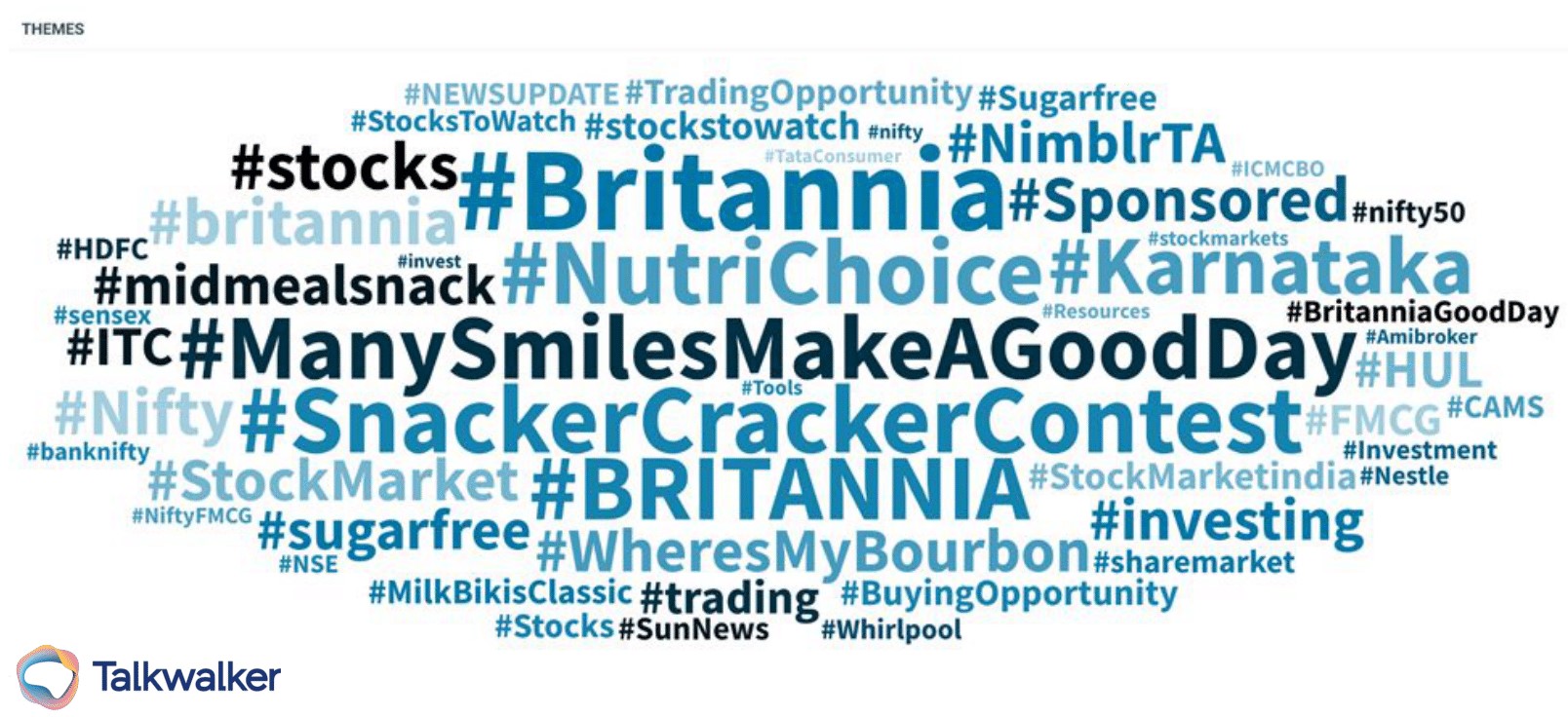Talkwalker’s theme cloud shows the top 25 hashtags surrounding the Britannia and Parle brands.