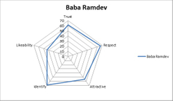 Lots of Campaign readers wrote in all of last week asking me to share my research on Baba Ramdev in more detail. Since the study of Celebrities as Human Brands is the subject of my PhD, and I am almost 99% done with my thesis, I am somewhat hesitant to publicly share the data at this stage. However, looking at the keen interest in the Baba as a brand, here are some snapshots of what the god-man looks like to Middle India on some select attributes. I actually do have a fuller picture of the Baba’s brand map, since I capture data across 64 parameters, but in the interest of my PhD submission, we shall ride for now with an abbreviated version of the research on the Baba.