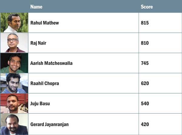 | Fixture | Aarish Matcheswalla | Gerard Jayaranjan | Juju Basu | Raahil Chopra | Raj Nair | Rahul Mathew |