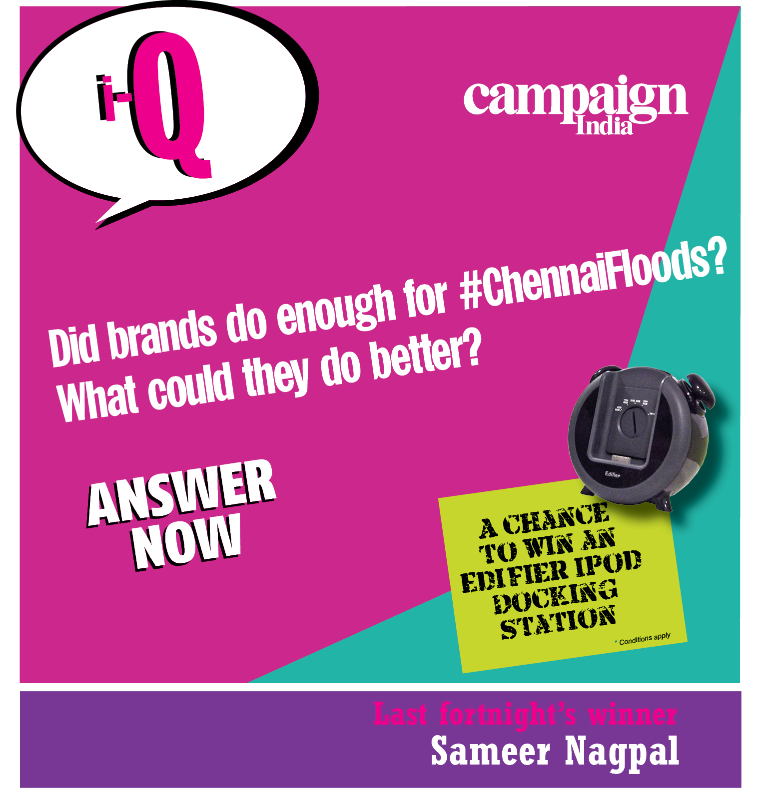 Campaign India is giving reader(s) a chance to win an Edifier iPod Docking Station worth Rs 2,500.