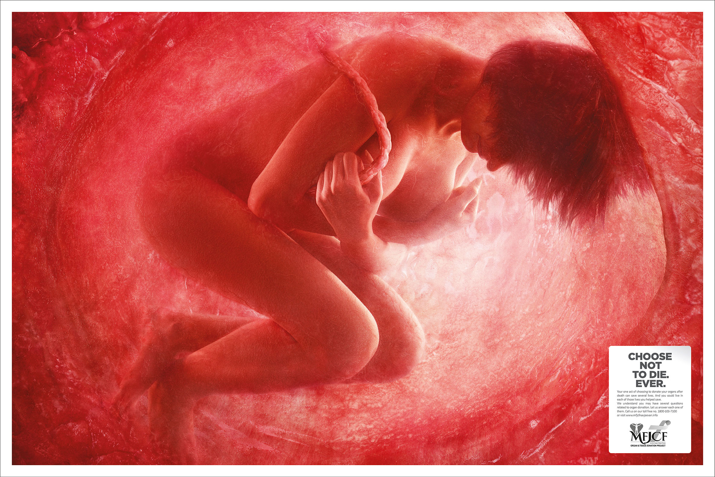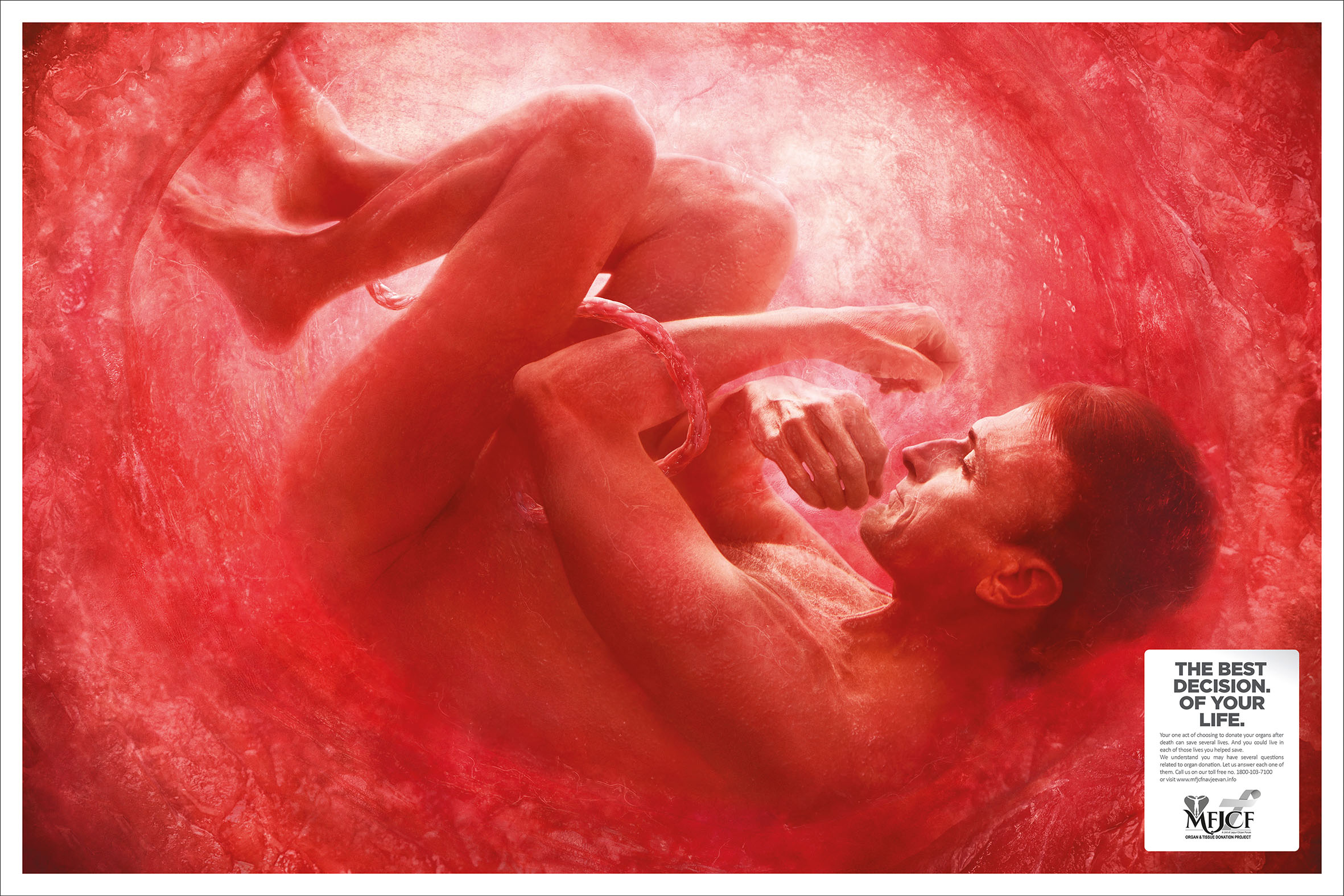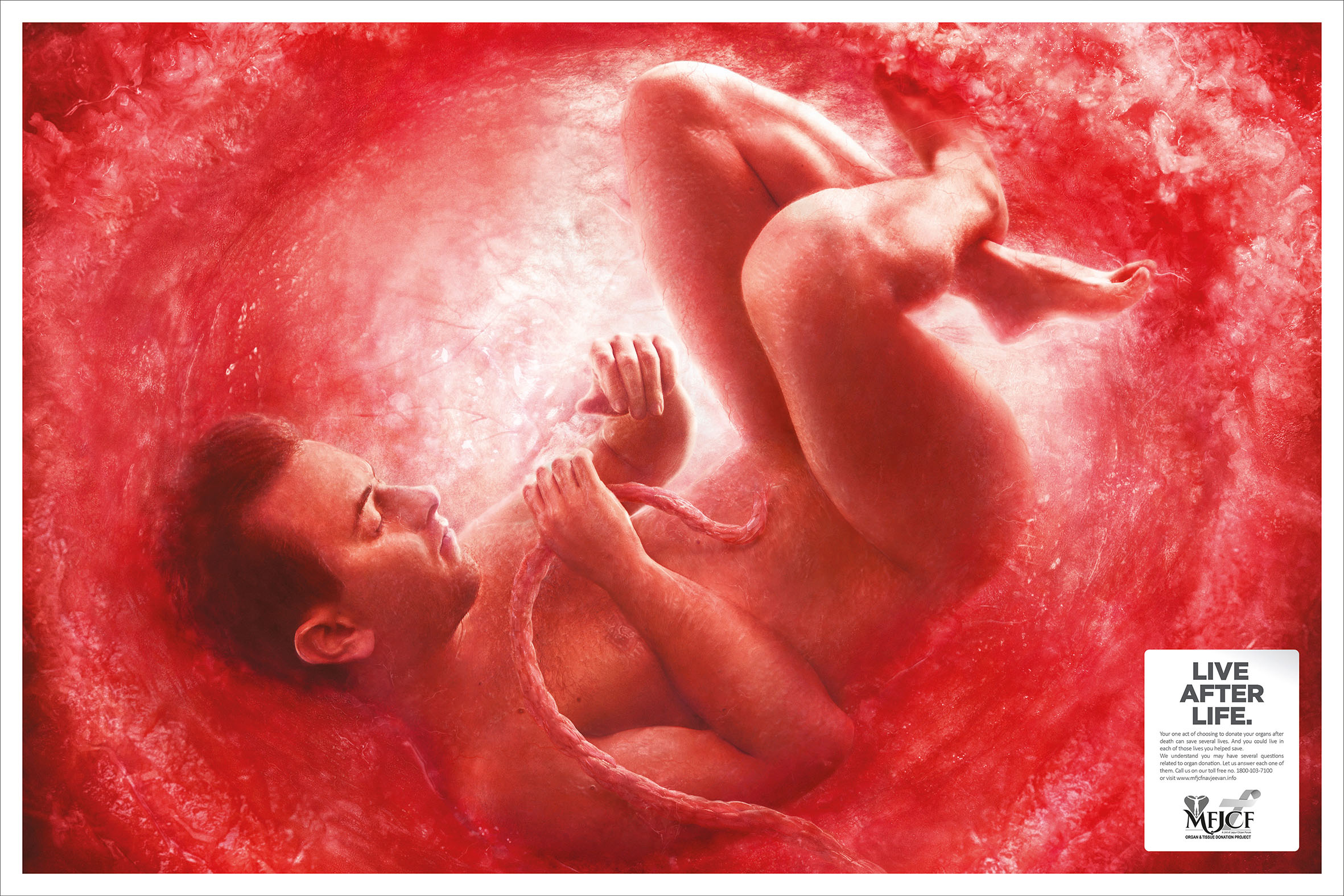 But Indians also believe in rebirth and consider it to be holy. So to highlight this concept, the agency created a print campaign using visuals of grown men and women in fetal position inside a womb. The campaign showcased that by donating their organs, people could save lives, and more importantly, they could live in each of those lives and be reborn.