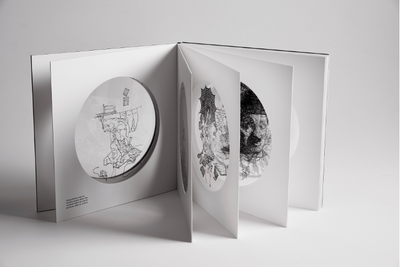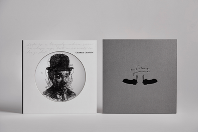 Developed as a piece of art, each page of the book depicts Chaplin’s life in illustrations on a transparent section. When stacked by closing the book, the illustrations come together to form the visage of the great entertainer.