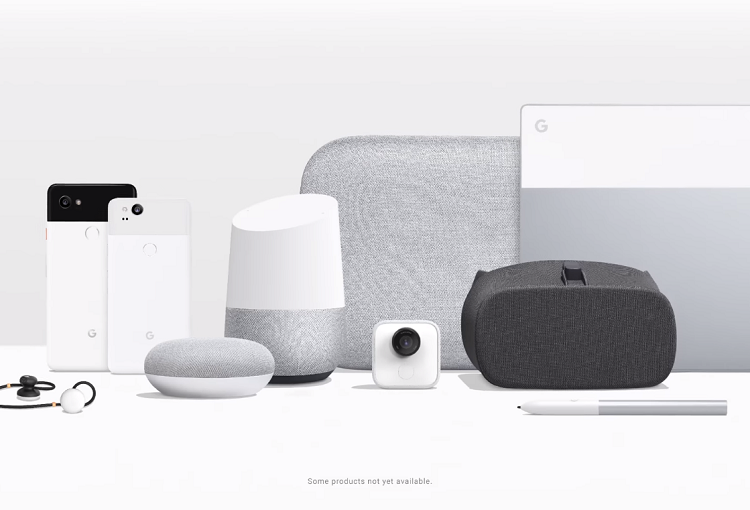 Launches two new Google Home products, two smartphones, smart earphones, a smart pen, a laptop, a new AR device and a camera, all with AI