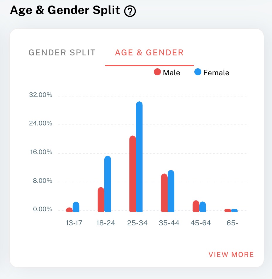 The demographic structure of Mamdani’s online audience reflects both local grounding and global curiosity. On Instagram, 59% of followers identify as female and 41% as male, with the dominant age group 25–34 years (50.7%), followed by 18–24 years (21.1%). On TikTok, the split is nearly even—50.09% female and 49.91% male—with a combined 76% between 18 and 34 years, confirming resonance among urban millennials and Gen Z.