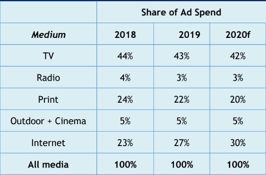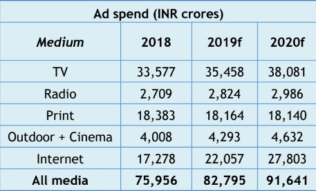 Digital is estimated to reach 30 per cent of ad spend in 2020 with growth coming from 3Vs (video, voice, vernacular-Indic) and advertising on e-commerce.