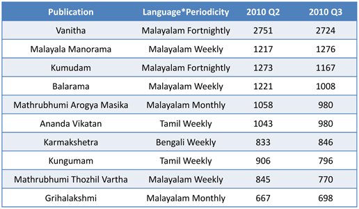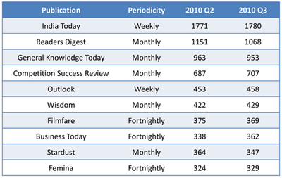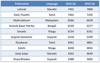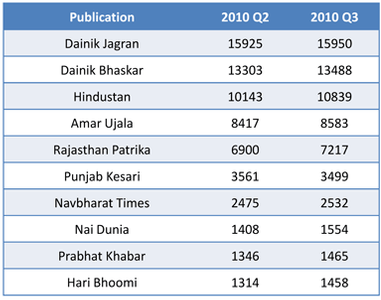 The third quarter results of the Indian Readership Survey (IRS) indicates no change in the order of the top publications from the previous quarter. Dainik Jagran and Dainik Bhaskar top the table once again, followed by Hindustan, Malayala Manorama and Amar Ujala, all of whom have gained in Average Issue Readership (AIR).