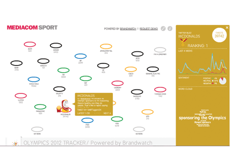 Sponsorship buzz tracking tools display real-time mentions of Olympic sponsors, showing volume of mentions and sentiment around the brand.