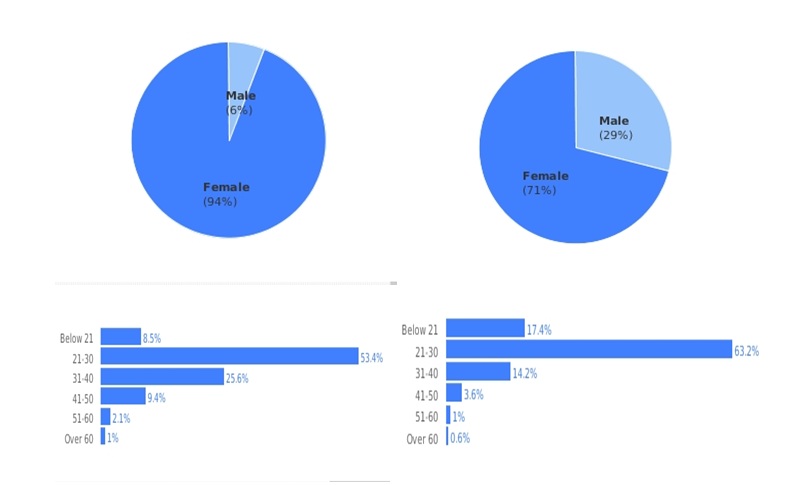 If you look at the charts below, you can see how Biba’s audience profile is mostly composed of young women. So is Dove’s.