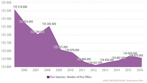 Group A staff are senior staff administrative department employees. They have seen a rise of 7% from 2013-14 to 2016-17. This at a time when post mail traffic (letter, parcel and packet) is in a steady decline.