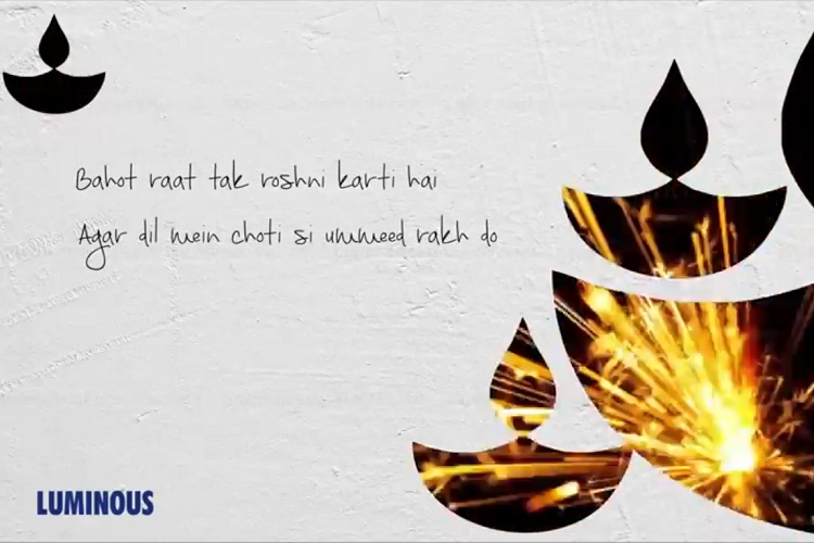 Sachin Bhalla, VP - marketing of Luminous Power Technologies, added, “Luminous as a brand has been very deeply embedded in consumer lives over the last 30 years. With this campaign, we wanted to bring alive the very spirit of our brand and our vision. Our intent is not to sell more products, but to capture the essence of what true light means. With these enchanting words we are happy to give #RoshniDilki a new meaning.”