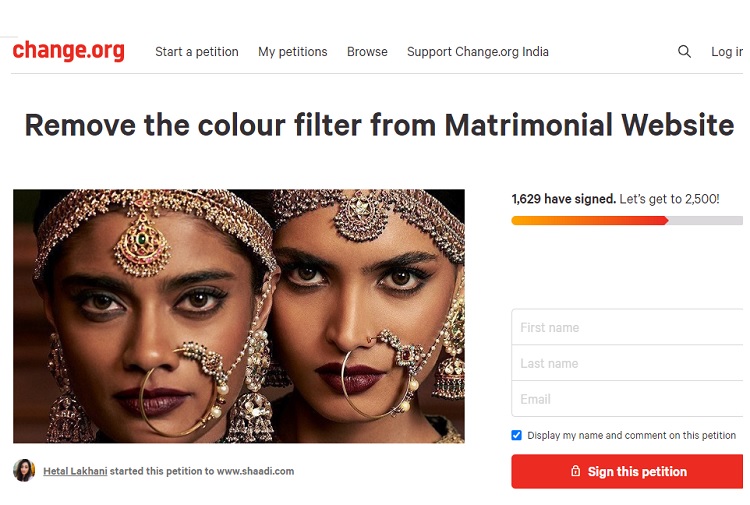 Shaadi.com removes skin colour 'filter' after petition