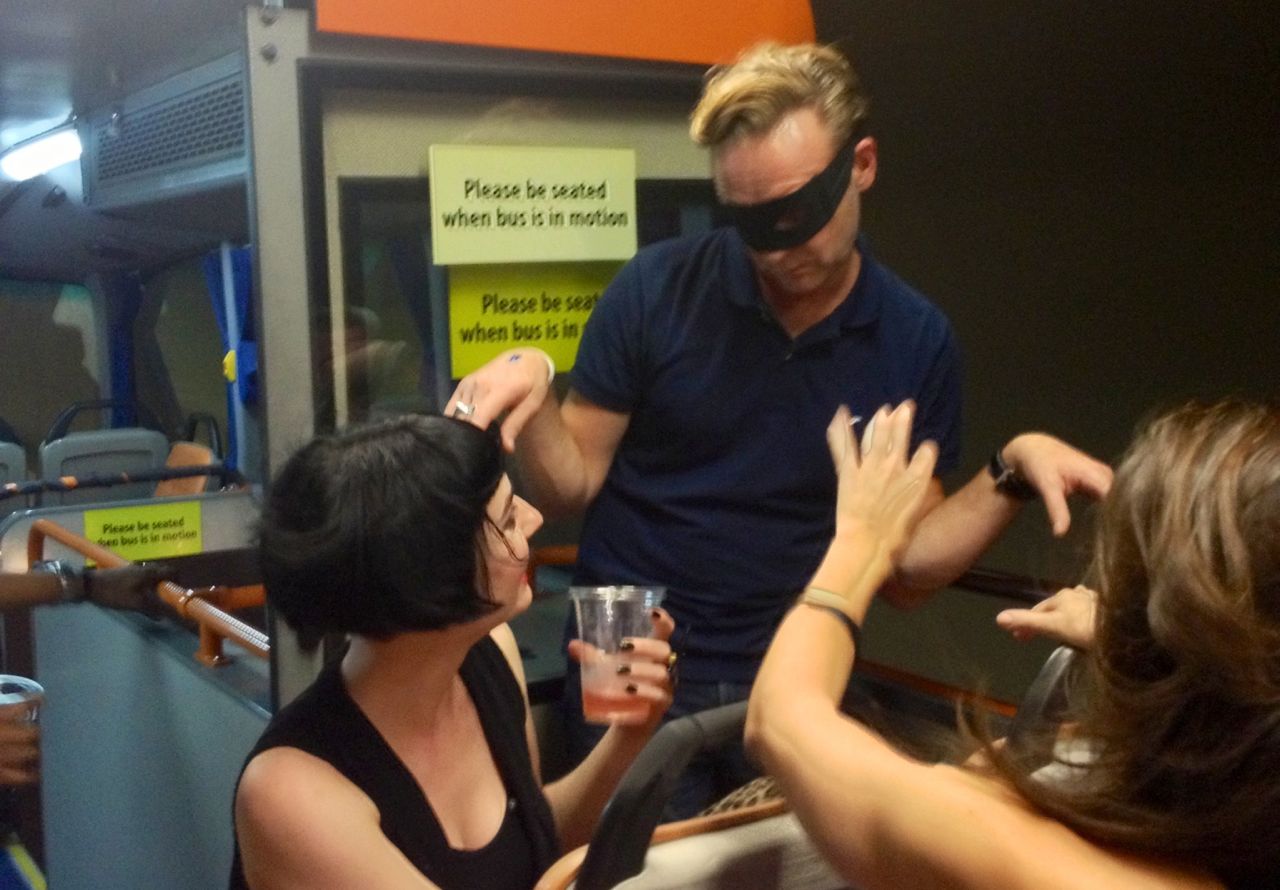 While not quite the glamorous, Hugh Hefner-worthy affair this reporter was expecting (where were the ice sculptures and leopard-print lounges, I ask you?) it was all good fun, with Bates' Benny Cai doing a formidable job of keeping everyone on the open-air roof of the rented tourist bus (as opposed to tumbling off it).