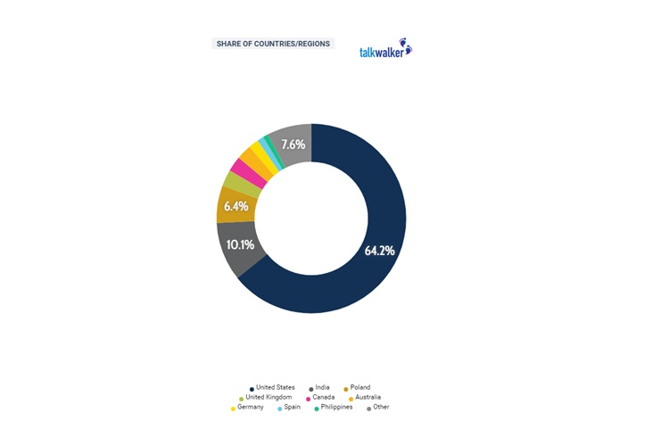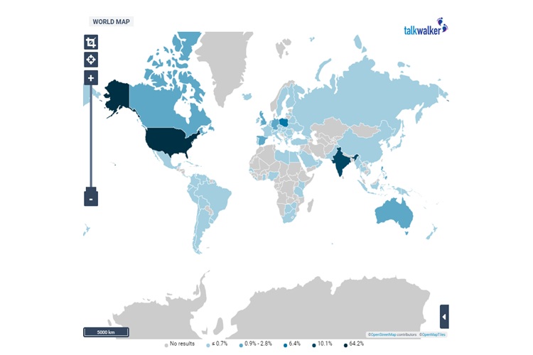 It is very exciting to witness the momentum of a viral hashtag and to track where it originates and spreads online. Taking a closer look at #BoycottGillette in particular, you can see how it’s virality is concentrated in the US - 64% of the total share of mentions. This makes sense as the campaign was released in the US, for a US audience. Interestingly enough, the country to follow suit owning 10% of the online conversation is in fact India.