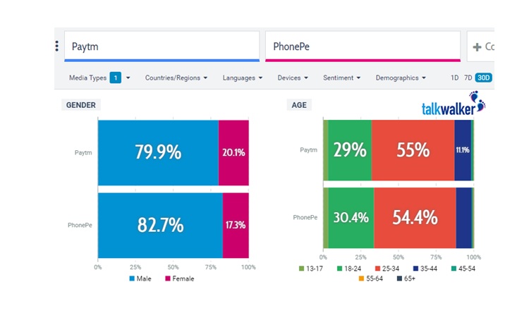 Demographics: With mobile wallets which target the tech savvy millennials, it’s always crucial to know which demographic is talking about you. It’s interesting to see that both apps have succeeded in targeting millennials but the second most popular age group talking about the apps is formed by Gen Z. This definitely makes sense since the early adopters are more or less always the next generation.