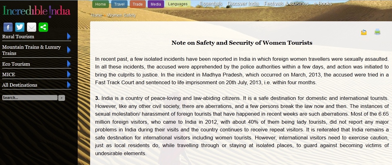 Why would a brand like Incredible!India deliberately lie? Do they think this will be taken as the truth? Really? With the amount of worldwide negative publicity and true stories by tourists that are available freely on the net?