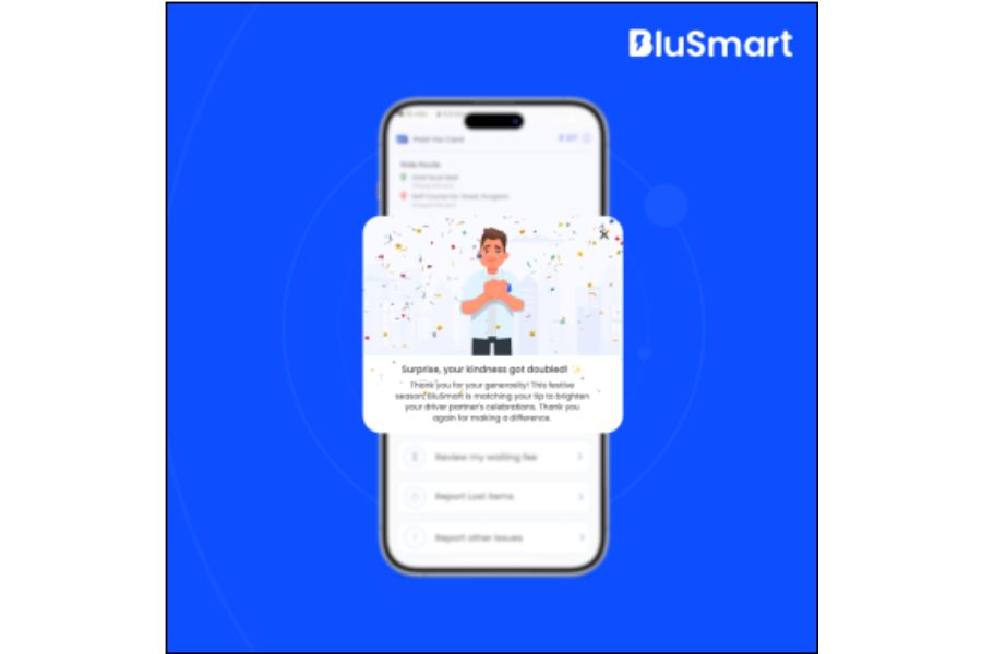 BluSmart has introduced a new tipping feature on its app, allowing riders to tip driver partners during the festive season. As part of the #RideToCelebrate campaign, BluSmart will match every tip given by riders, effectively doubling the amount credited to drivers’ weekly payouts.
