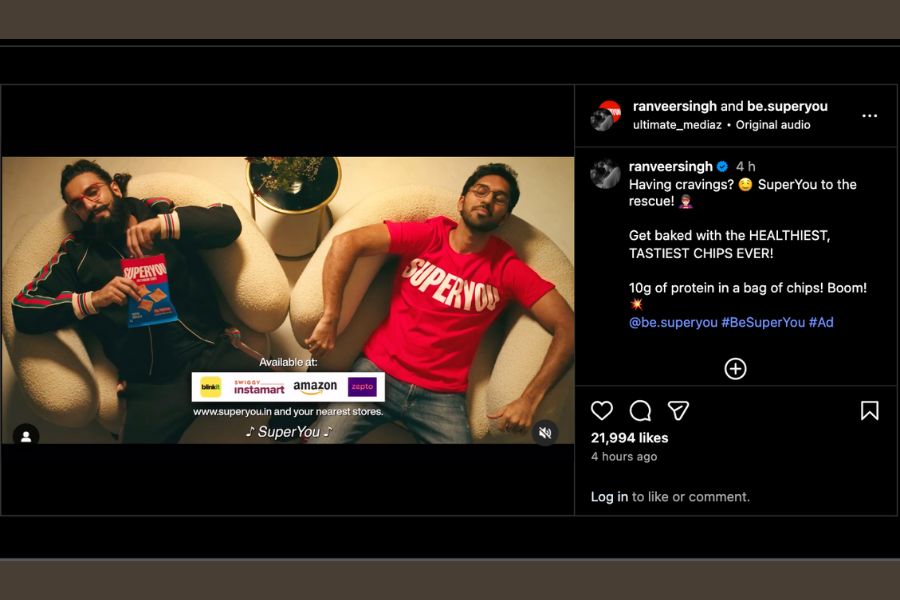 SuperYou has launched a new advertising campaign to promote its latest product, Multigrain Chips with 10 grams of protein per pack. The campaign highlights the chips as a protein-rich, savoury snack suitable for a wide range of consumers, including students, gym-goers and working professionals. The product is available in four flavours—Super Masala, Pudina, Cheese and Tomato, and Sour Cream and Onion—and includes three grams of dietary fibre. The campaign positions the chips as a convenient and flavourful alternative to traditional snacks, reflecting growing demand for protein-forward, clean-label food options. The promotion is part of SuperYou’s broader effort to expand its footprint in the functional snacking segment. The brand’s previous product, Protein Wafers, sold over 16 lakh units within 90 days of their launch in November 2024, according to a SuperYou press release. With India’s protein chips market expected to grow at a CAGR of 10.8% and reach $99.3 million by 2030, SuperYou aims to meet rising demand through innovation and accessibility. The new chips will be available both online—via SuperYou’s website, Amazon, Flipkart, Zepto, Blinkit, and Instamart—and offline at Reliance, 711, Noble Chemist, Wellness Forever, Ratnadeep, and more than 1,000 other standalone retail stores. SuperYou was co-founded by Ranveer Singh and Nikunj Biyani and is backed by Think9 Consumer Technologies.