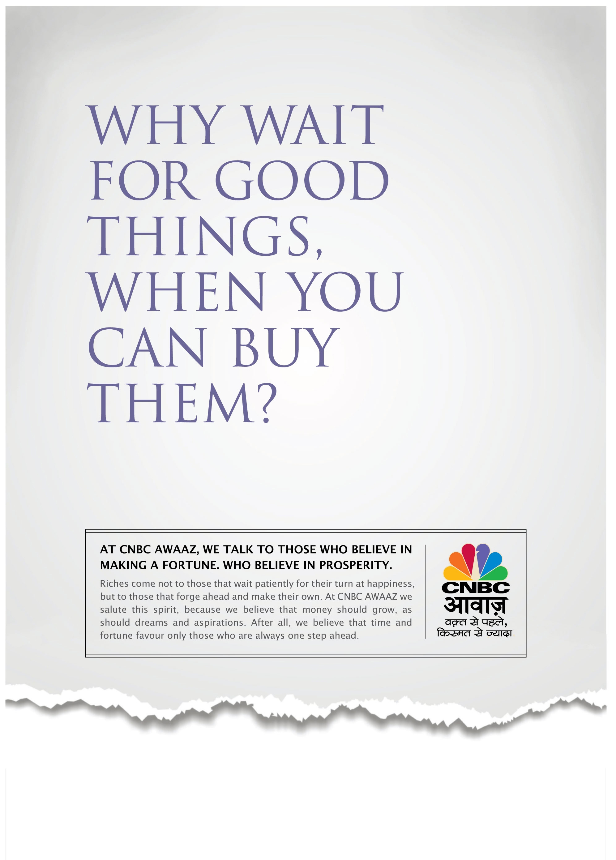 He mentioned that one can challenge his destiny to get more than what's destined for him and one can get it ahead of time provided one makes the right decisions and that's where CNBC Awaaz comes into picture.
