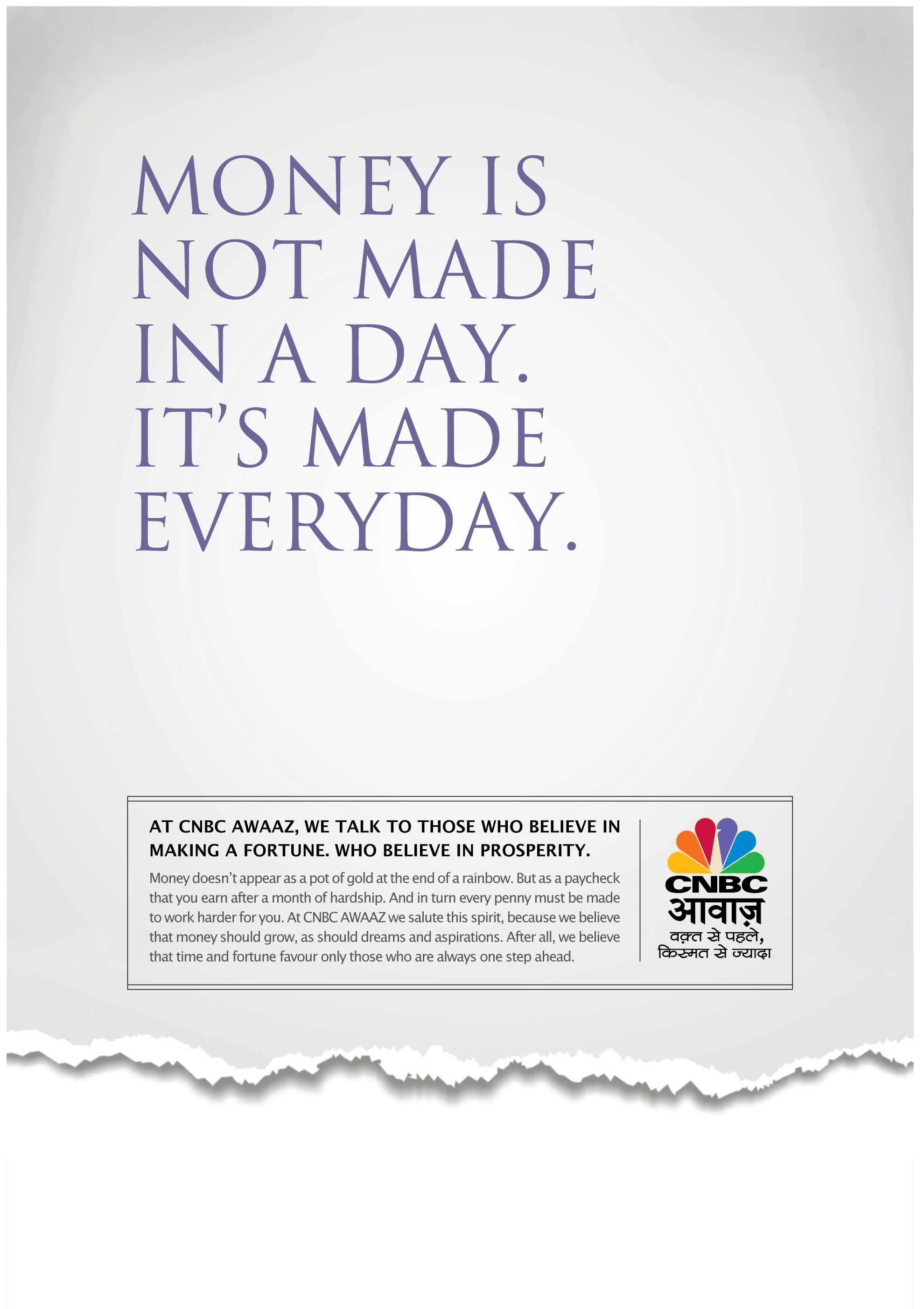 CNBC Awaaz completed seven years of existence in the market of business news channels, on 13 January 2012. On this occasion the channel has launched a new campaign that celebrates its achievements and highlights the grit of all the viewers who would have monetarily benefited out of watching the channel's reportage.