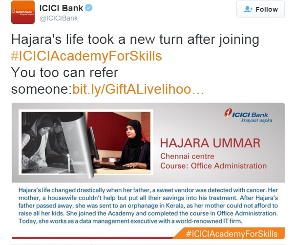 ICICI Foundation has launched a campaign for the ICICI Academy for Skills’ nationwide referral programme, ‘Gift A Livelihood’.